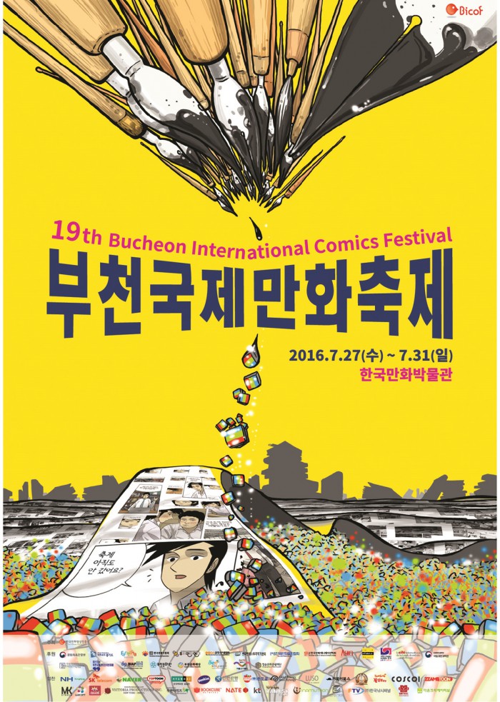 제19회 부천세계국제만화축제는 오는 31일까지 부천 한국만화박물관 등지에서 열린다. '미생', '인천상륙작전'의 윤태호 작가의 생애 첫 개인전 '윤태호 특별전-삶의 고고학', 스누피 기획전 '인사이드 피너츠' 등 다양한 전시와 만화의 미래에 대해 고찰하고 토론하는 컨퍼런스, 국내 최대 만화 전문 페어 등이 펼쳐진다.제19회 부천국제만화축제 포스터. <사진제공=제19회 부천국제만화축제 조직위원회>