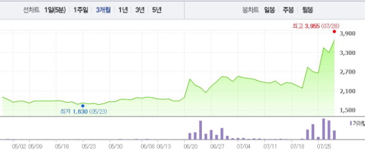 버추얼텍은 28일 오전 9시37분 현재 전 거래일 대비 12.14%(400원) 상승한 3695원에 거래되고 있다. 버추얼텍은 26일 기관이 매수에 나서면서 29.94% 상승폭을 기록했다.