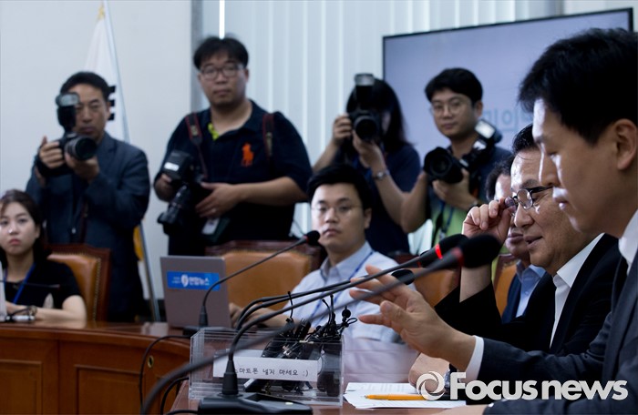 (서울=포커스뉴스) 박지원 국민의당 비상대책위원장이 28일 오전 서울 여의도 국회에서 열린 취임 한 달 기자간담회에 참석해 안경을 고쳐쓰고 있다.