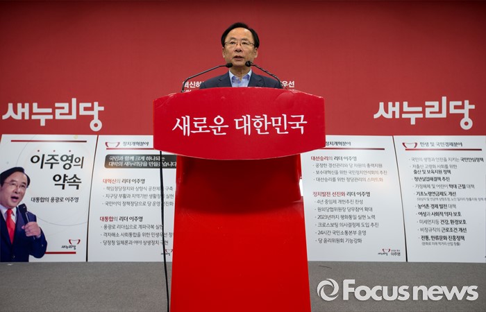 (서울=포커스뉴스) 새누리당 전당대회 당대표 선거에 출마한 이주영 새누리당 의원이 28일 오전 서울 여의도 새누리당사에서 정책공약 발표를 하고 있다.
