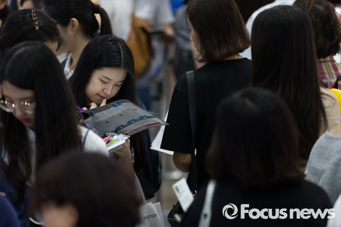 (서울=포커스뉴스) 28일 오전 서울 강남구 코엑스에서 열린 2017학년도 수시 대학입학정보박람회 행사장을 찾은 한 학생이 팜플렛을 보고 있다. 이번 박람회는 7월 28일부터 31일까지 나흘간 진행되며 전국 140개 4년제 대학이 참가한다.