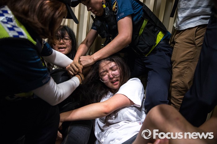 (서울=포커스뉴스) '화해·치유 재단'이 공식 출범한 28일 오전 서울 중구에 위치한 한 건물에서 열린 재단 출범 이사장 기자간담회장에서 재단 출범에 반대하는 대학생들이 회견장을 점거, 농성을 벌이고 있다.