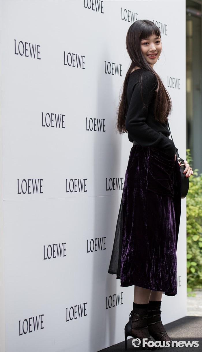 (서울=포커스뉴스) 28일 오후 서울 논현동의 한 갤러리에서 열린 스페인 패션브랜드 '로에베' 포토콜 행사에 참석한 배우 설리가 포즈를 취하고 있다.
