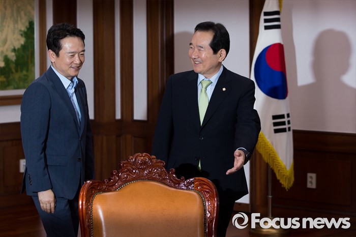 (서울=포커스뉴스) 정세균(오른쪽) 국회의장과 남경필 경기도지사가 28일 오후 서울 여의도 국회 의장접견실에서 회동을 하기 위해 자리로 이동 하고 있다.