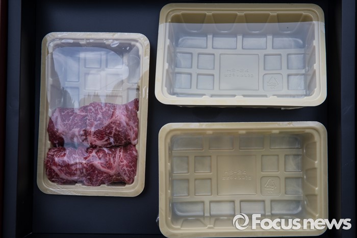 (서울=포커스뉴스) 부정청탁 및 금품 등 수수 금지, 김영란법이 합헌 판결이 난 28일 오후 서울 종로구 헌법재판소 앞에서 한국농축산연합회원이 판결을 반대하며 법이 적용된 5만원 한우세트를 들고 시위하고 있다.