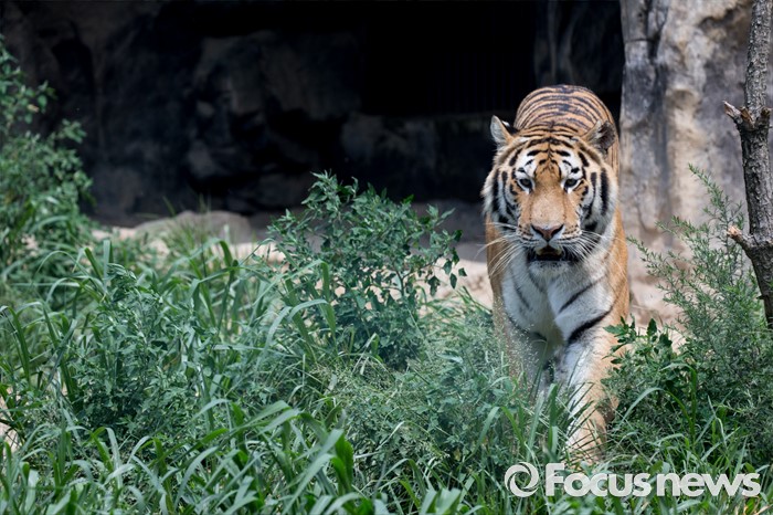 (과천=포커스뉴스) 28일 오후 경기도 과천 서울동물원에서 시베리아 호랑이가 얼린 닭고기를 먹기 위해 이동하고 있다.