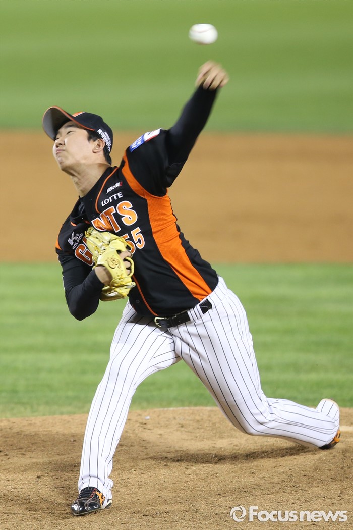 (서울=포커스뉴스) 28일 오후 서울 잠실구장에서 열린 2016 타이어뱅크 KBO리그 롯데-LG 경기에서 5회말 롯데 투수 김유영이 등판해 투구하고 있다.