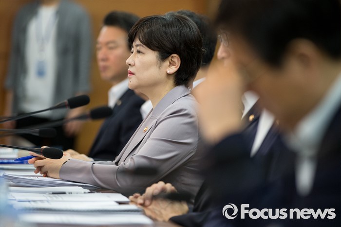 (서울=포커스뉴스) 강은희 여성가족부 장관이 29일 오전 서울 종로구 정부서울청사에서 국가정책조정회의에 참석하고 있다.