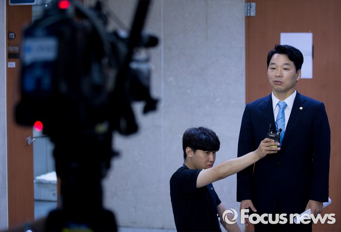 (서울=포커스뉴스) 김병관 더불어민주당 의원이 29일 오전 서울 여의도 국회 정론관에서 전국청년위원장 출마 기자회견을 마친 뒤 취재진 질문에 답하고 있다.