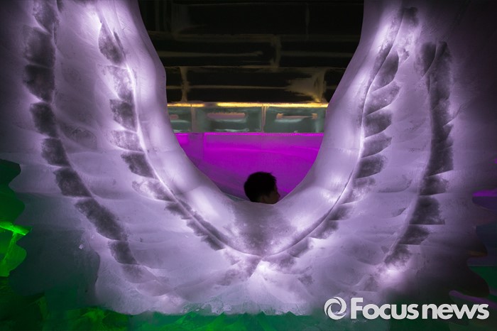 (서울=포커스뉴스) 3일 오후 서울 마포구 아이스뮤지엄에 얼음 구조물들이 전시돼 있다.