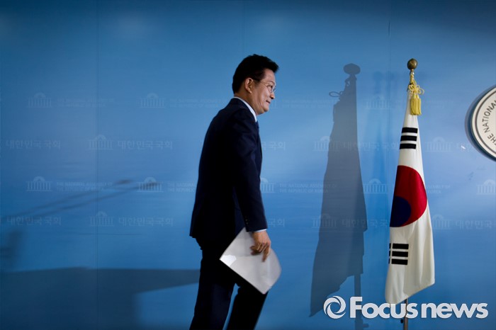 | △ 기자회견장으로 들어서는 송영길 더민주 당대표 후보 |