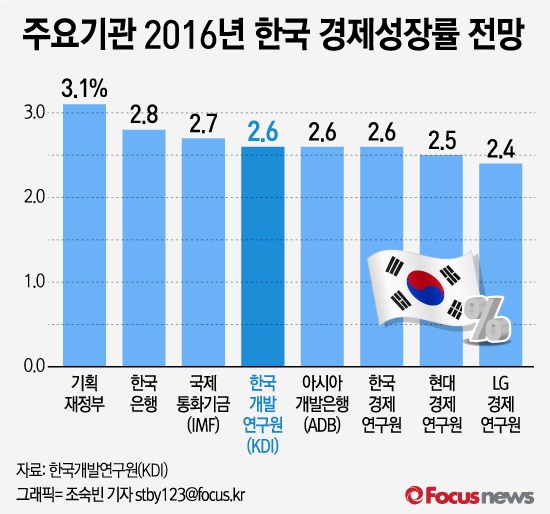 | △ [그래픽] 주요기관 2016년 한국 경제성장률 전망 |