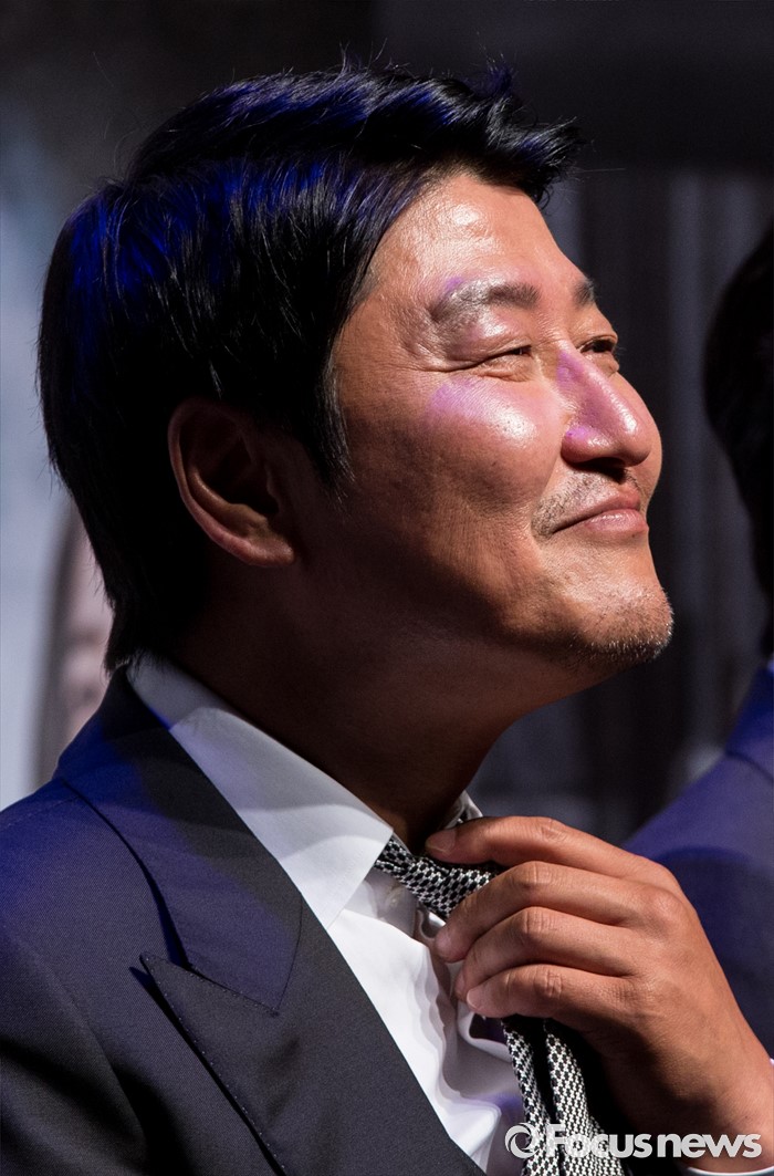 (서울=포커스뉴스) 배우 송강호가 4일 오전 서울 강남구 압구정 CGV에서 열린 영화 '밀정' 제작보고회에 참석해 넥타이를 만지고 있다. 배우 송강호, 공유, 한지민, 엄태구, 신성록 등이 출연하는 영화 '밀정'은 일제 강점기 무장독립단체 의열단과 일본 경찰 간의 암투를 그린 작품으로 오는 9월 개봉 예정이다.