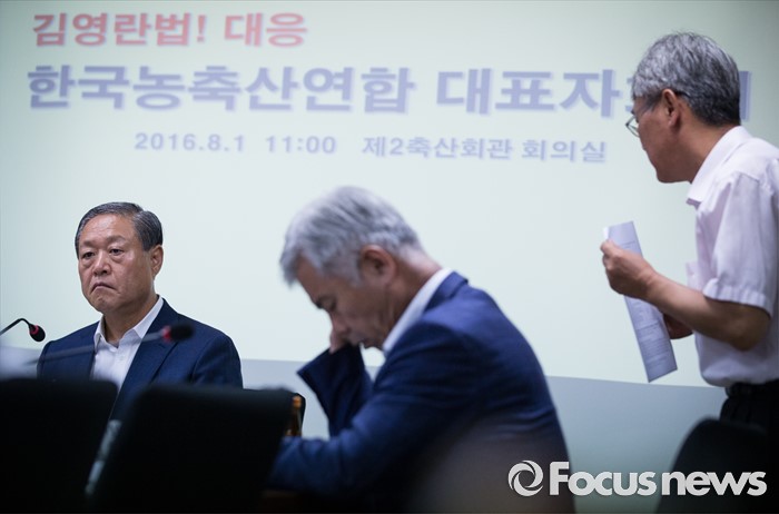 (서울=포커스뉴스) 한국농축산연합회 대표자들이 1일 오전 서울 서초구 제 2축산회관에서 김영란법 대응에 관련된 회의를 하고 있다.