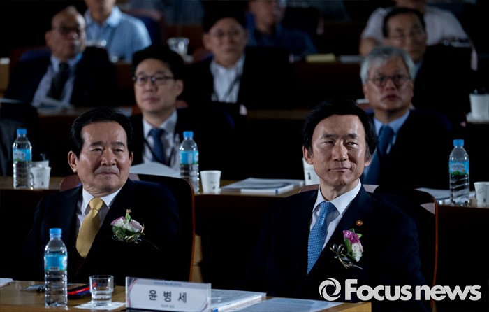 (서울=포커스뉴스) 3일 오전 서울 여의도 국회 의원회관에서 열린 공공외교법 발효기념 심포지엄에 참석한 정세균(왼쪽) 국회의장, 윤병세 외교부 장관 등이 영상을 시청하고 있다.