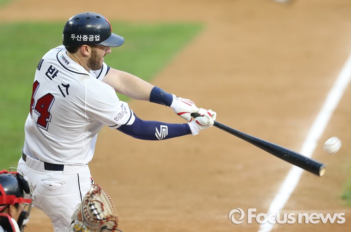 △ 희생플라이 날리는 두산 에반스