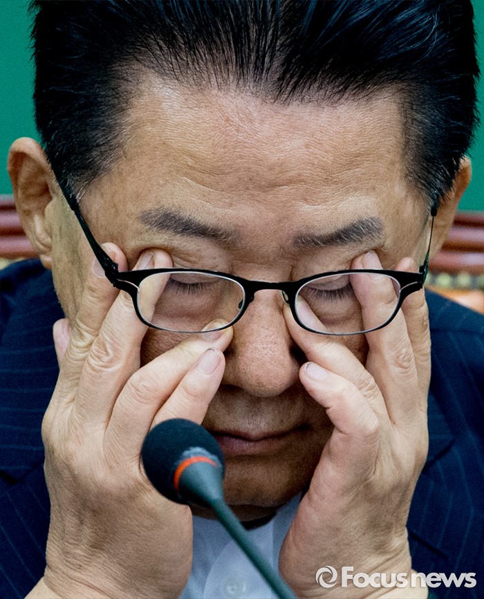 (서울=포커스뉴스) 3일 오전 서울 여의도 국회에서 열린 국민의당 비상대책위원회의에 참석한 박지원 비대위원장이 얼굴을 만지고 있다.