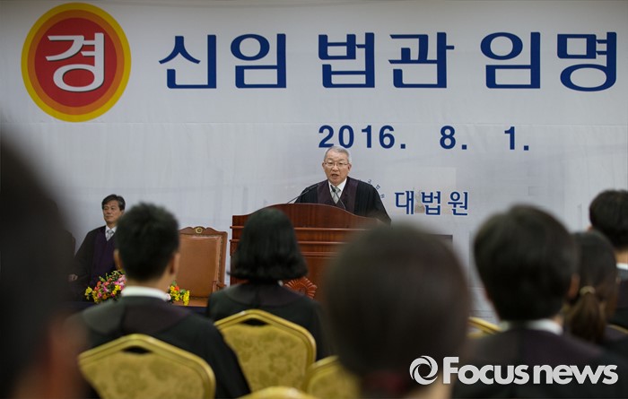 (서울=포커스뉴스) 1일 오전 서울 서초동 대법원에서 열린 신임 법관 임명식에서 양승태 대법원장이 인사말을 하고 있다.