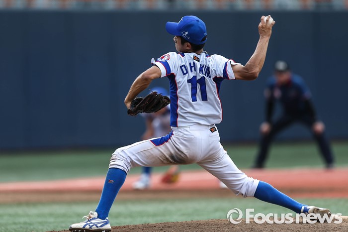(서울=포커스뉴스) 1일 오후 서울 양천구 목동종합운동장에서 열린 2016 세계 청소년 야구 대회 한국 A조와 일본 A조 경기 5회말 무사 상황, 한국 A조 김대한이 역투를 하고 있다.