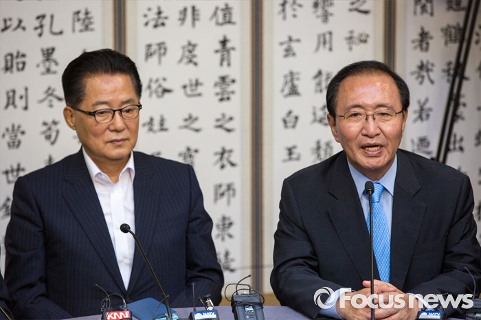 (서울=포커스뉴스) 노회찬(오른쪽) 정의당 원내대표가 3일 오전 서울 여의도 국회에서 열린 원내대표 회동에 참석해 모두발언 하고 있다.