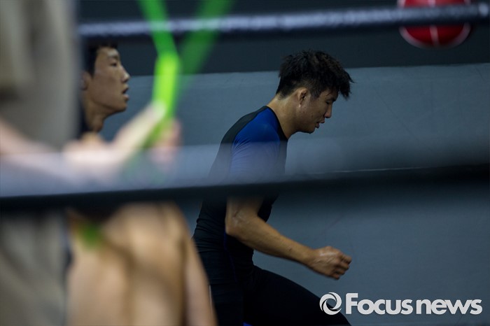 (서울=포커스뉴스) 오는 21일(한국시각) 미국 라스베이거스 T-모바일 아레나에서 개최되는 UFC-202에 출전해 러시아 출신 술탄 알리예프를 상대로 웰터급 경기가 예정된 임현규가 3일 오후 서울 서대문구 TAP복싱 & 레슬링에서 훈련을 하고 있다.
