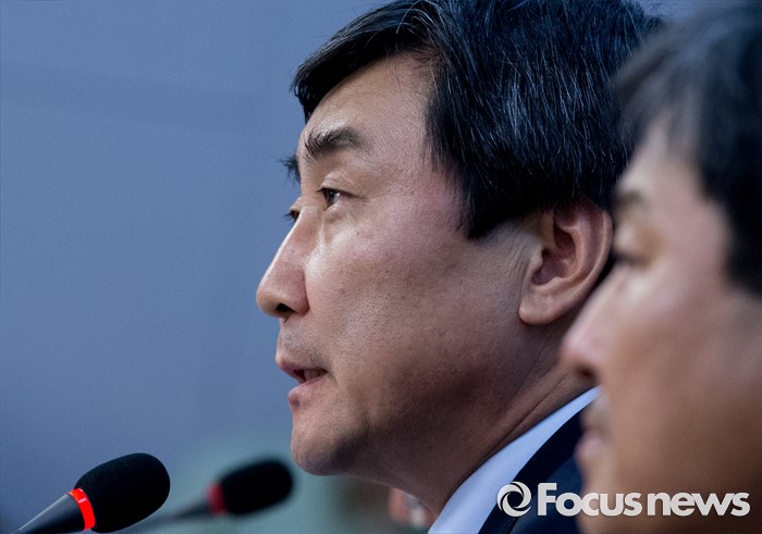 (서울=포커스뉴스) 1일 오후 서울 여의도 국회 의원회관에서 열린 더불어민주당 자치분권민주지도자회의 당대표 후보자 초청 토론회에 참석한 이종걸 의원이 모두발언을 하고 있다.