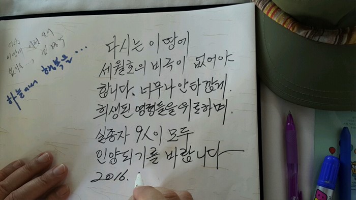 | △ 팽목항 찾아 방명록 남기는 김무성 |