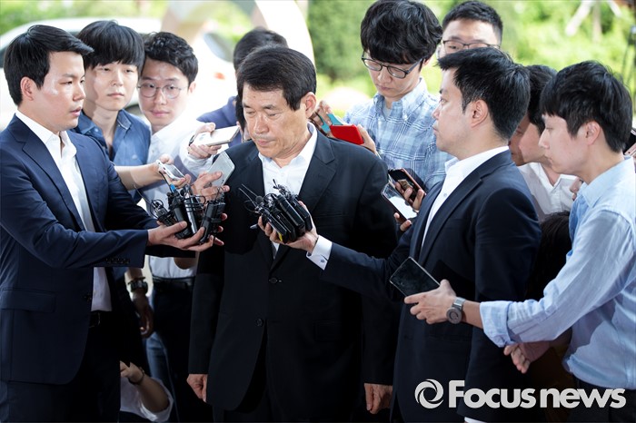 (서울=포커스뉴스) 보좌관의 월급을 빼돌려 정치자금으로 사용한 혐의를 받고 있는 이군현 새누리당 의원이 피의자 신분으로 4일 오전 서울 양천구 서울남부지방검찰청으로 들어서기 전 취재진의 질문을 받고 있다.