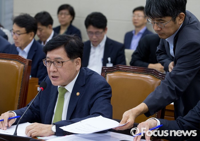 (서울=포커스뉴스) 3일 오전 서울 여의도 국회에서 추경예산 심사를 위해 열린 보건복지위원회 전체회의에 참석한 정진엽 보건복지부 장관이 의원들의 질의에 답변 중 관계자로부터 자료를 받고 있다.