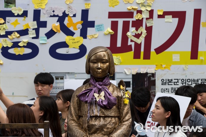 (서울=포커스뉴스) 3일 오후 서울 종로구 구 일본대사관 앞에서 열린 '제1242차 일본군 위안부 문제해결을 위한 정기 수요집회'에 시민들이 참석하고 있다.