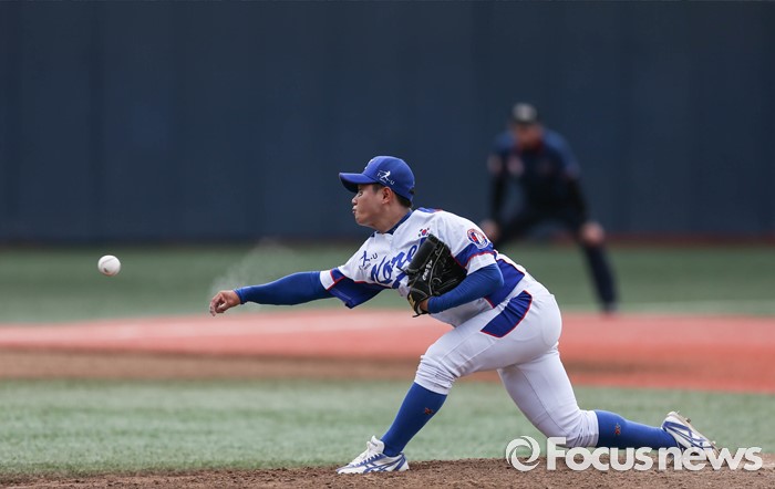 (서울=포커스뉴스) 1일 오후 서울 양천구 목동종합운동장에서 열린 2016 세계 청소년 야구 대회 대한민국과 일본 A조 경기 3회초 2사 1,2루 상황, 대한민국 조용현이 역투하고 있다.