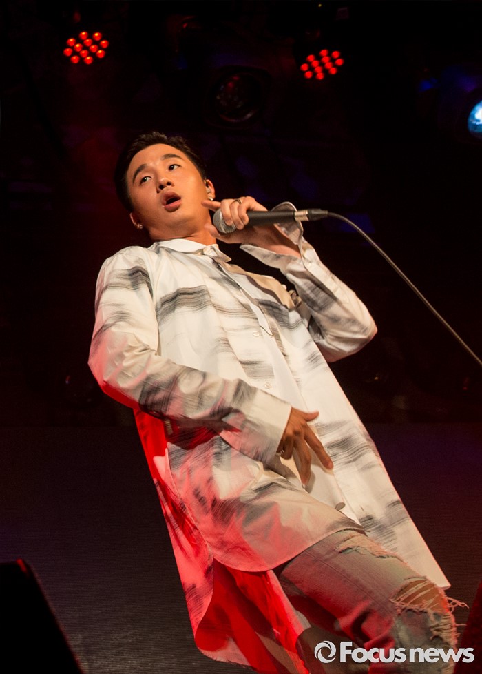 (서울=포커스뉴스) '쇼미더머니4' 우승자 래퍼 베이식이 1일 오후 서울 용산구 현대카드 언더스테이지에서 열린 첫 번째 미니앨범 'Nice' 발매 기념 쇼케이스에 참석해 화려한 무대를 선보이고 있다.