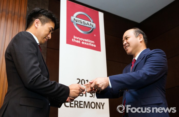 타케히코 키쿠치(Takehiko Kikuchi) 한국닛산 대표는 "열정적으로 업무에 임해준 세일즈 컨설턴트들의 노고에 감사한다. 지속적인 딜러사와의 지속적인 협력을 통해 동반 성장의 틀을 견고히 유지해 나가겠다"고 격려했다. 또한 "올 뉴 알티마의 성공적 출시에 이어 프리미엄 SUV 올 뉴 무라노를 국내 안착시켜 닛산의 새로운 전성기를 이끌어나갈 것"이라고 밝혔다.타케히코 키쿠치 한국닛산 대표이사(오른쪽)이 우수 세일즈 컨설턴트에게 위촉장을 전달하는 모습. <사진제공=한국닛산>