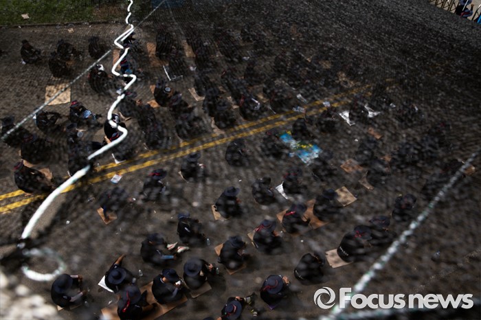 (아산=포커스뉴스) 1일 오전 충남 아산 탕정면 갑을오토텍에서 노조원들이 사측의 경비 용역 투입에 대비하고 있다.