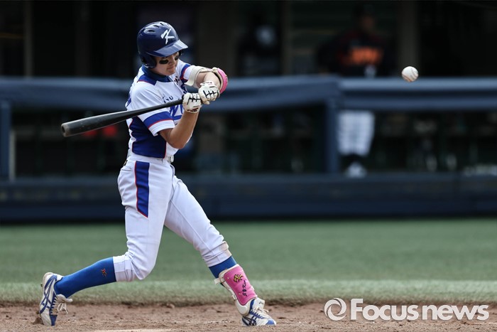 (서울=포커스뉴스) 1일 오후 서울 양천구 목동종합운동장에서 열린 2016 세계 청소년 야구 대회 '한국A VS 일본A' 경기에서 2회초 손동현 선수가 안타를 치고 있다.