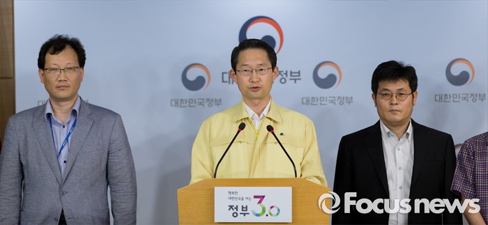 (서울=포커스뉴스) 4일 오후 서울 종로구 정부서울청사에서 김희겸(가운데) 국민안전처 재난관리실장이 부산-울산 악취발생에 따른 민관합동조사단 결과발표를 하고 있다. 오른쪽은 서용수 민관합동 조사단장.