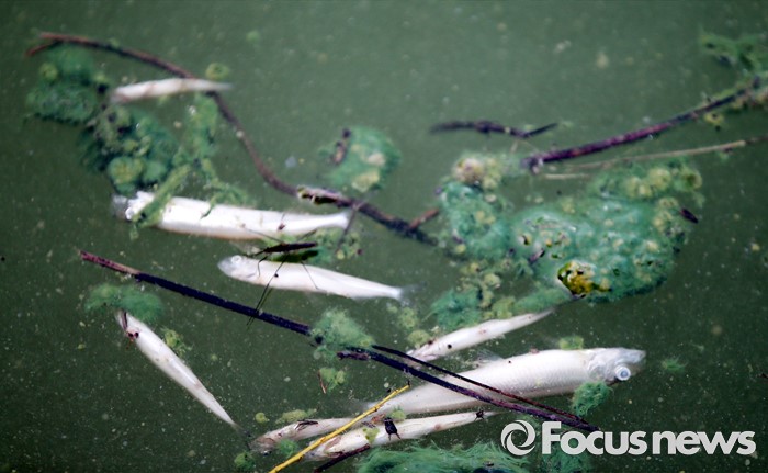 | △ 녹조로 폐사된 물고기 |