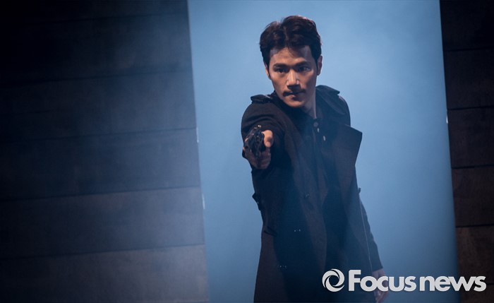 (서울=포커스뉴스) 4일 오후 서울 중구 충무아트센터에서 열린 연극 '햄릿-더 플레이' 언론시연회에 참석한 배우 김강우가 열연하고 있다.