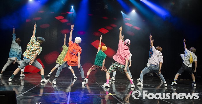 (서울=포커스뉴스) 4일 오후 서울 강남구 일지아트홀에서 열린 아이돌 그룹 업텐션의 미니앨범 'Summer go'발표 쇼케이스에 참석한 멤버들이 무대를 선보이고 있다.