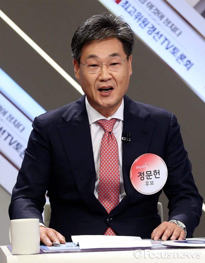 (서울=포커스뉴스) 4일 서울 중구 TV조선 스튜디오에서 열린 새누리당 최고위원 후보자 TV토론회에 참석한 정문헌 전 의원이 발언하고 있다.