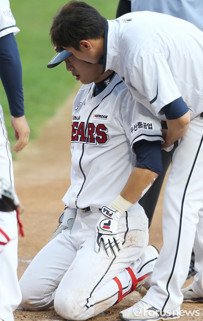 | △ 치료받는 두산 박건우 |