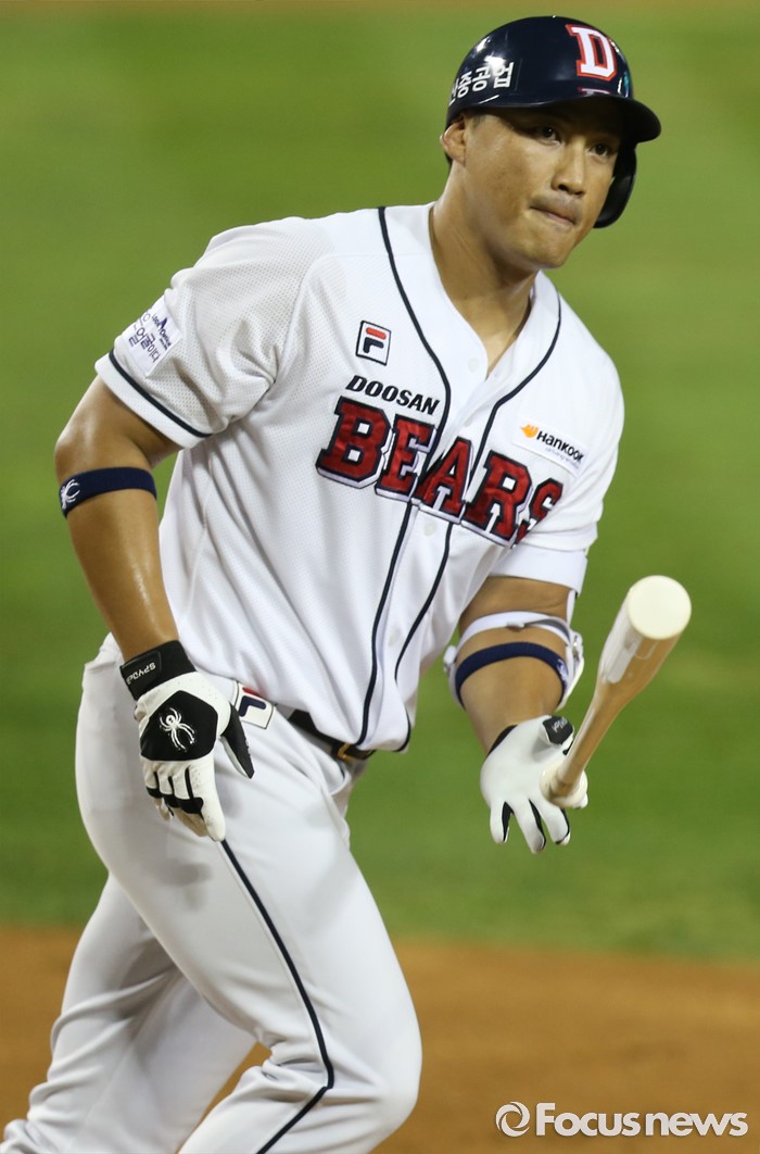 (서울=포커스뉴스) 4일 서울 잠실구장에서 열린 2016 프로야구 LG-두산 경기 6회말 무사 2루에서 두산 대타 홍성흔이 볼넷을 골라 진루하고 있다.