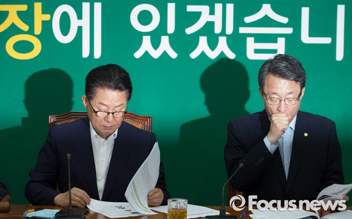 (서울=포커스뉴스) 5일 오전 서울 여의도 국회에서 열린 국민의당 비상대책위원회에 참석한 박지원(왼쪽) 비상대책위원장과 김성식 정책위의장이 생각에 잠겨 있다.