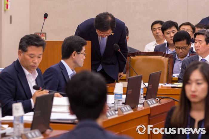 (서울=포커스뉴스) 김영석 해양수산부 장관 5일 오전 서울 여의도 국회에서 열린 국회 농림축산식품해양수산위원회 전체회의에 참석해 추가경정예산 편성관련 보고에 앞서 인사 하고 있다.