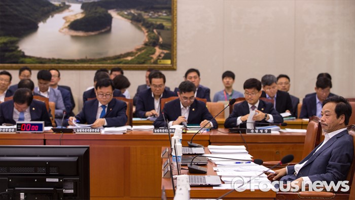 (서울=포커스뉴스) 이완영(오른쪽) 새누리당 의원이 5일 오전 서울 여의도 국회에서 열린 국회 농림축산식품해양수산위원회 전체회의에 참석해 회의 시작을 기다리고 있다.