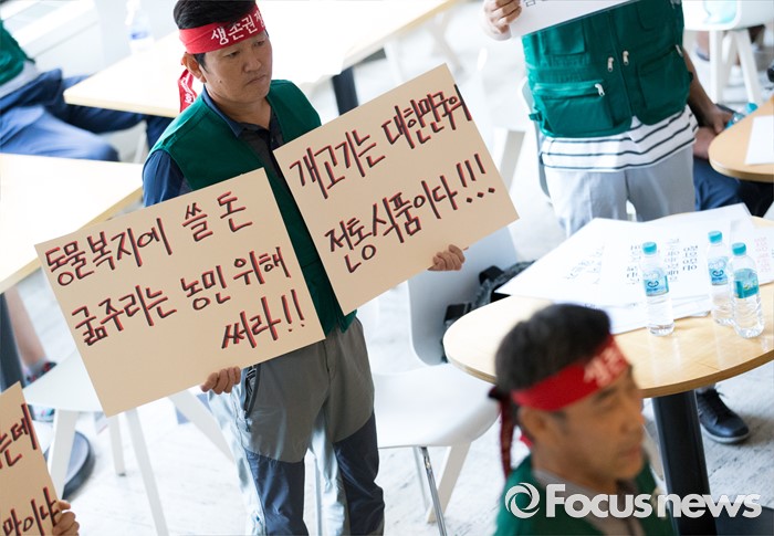 (서울=포커스뉴스) 5일 오전 서울 종로구 서울역사박물관에서 대한육견협회 회원들이 개 식용 종식을 위한 국제컨퍼런스를 반대하는 집회를 하고 있다.