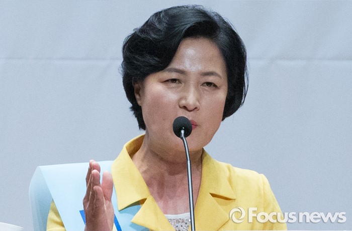 (서울=포커스뉴스) 5일 오후 서울 여의도 국회 의원회관에서 열린 더불어민주당 당대표 선출을 위한 예비경선대회에 참석한 추미애 당대표 후보가 정견발표를 하고 있다.