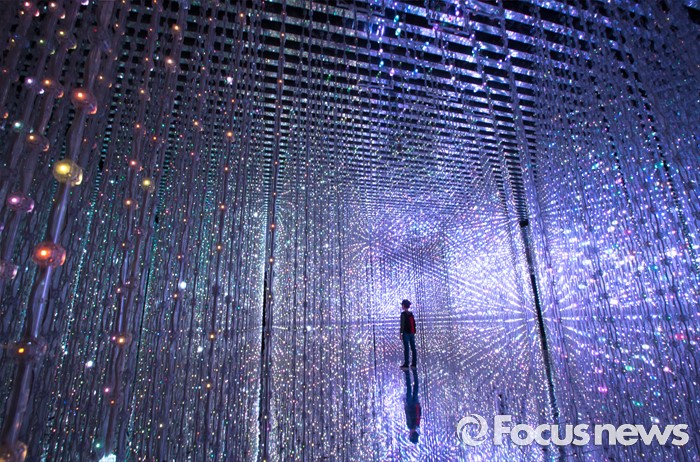 (서울=포커스뉴스) 5일 오후 서울 송파구 잠실 롯데월드 내 마련된 '팀랩월드' 상설전시장을 찾은 관람객이 화려한 디지털아트를 체험하고 있다.