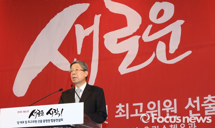 (천안=포커스뉴스) 5일 오후 충남 천안시 유관순체육관에서 열린 새누리당 대표 및 최고위원 선출 충청권 합동연설회에서 김희옥 혁신비대위원장이 인사말을 하고 있다.
