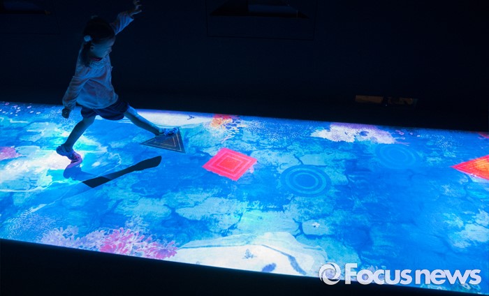 (서울=포커스뉴스) 5일 오후 서울 송파구 잠실 롯데월드 내 마련된 '팀랩월드' 상설전시장을 찾은 어린이가 화려한 디지털아트를 체험하고 있다.
